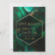Apresentando nosso elegante Convite Verde Emerald. Projetado com intrincada textura de pedra gema e cordas leves de ouro, ele libera o clima de opulência, luxo e elegância.