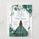 Convites Emerald Green Quinceanera Silver Crown Glitter