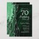 Emerald Green e 70 convite de aniversário prateado. Elegante design moderno com aquarela agate marble geode background, faux glitter prata e tipografia. Trendy convida o cartão perfeito para uma comemoração de dia das mulheres na moda. Impressos convites Zazzle ou modelo de impressão digital instantânea para download.
