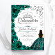 Convites Emerald Green Silver Floral Quinceanera