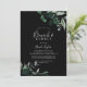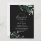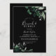 Este esmeraldo verde-preto e chá de panela à espinha é perfeito para um evento de boho. A elegante, porém rústica, design apresenta folhas de cor verde-d-água escura e umeucalipto com uma moderna sensação de floresta boêmica.