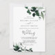 Este esmeraldo verde moody deixa o código QR, o cartão de convite de casamento do Rsvp é perfeito para um casamento de boho. A elegante, porém rústica, design apresenta folhas de cor verde-d-água escura e umeucalipto com uma moderna sensação de floresta boêmica.