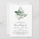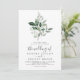 Este convite para casamento de esmeralda verde é perfeito para um casamento de boho. A elegante, porém rústica, design apresenta folhas de cor verde-d-água escura e umeucalipto com uma moderna sensação de floresta boêmica.