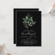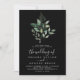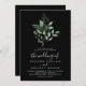 Este convite de casamento preto esmeralda verde é perfeito para um casamento de boho. A elegante, porém rústica, design apresenta folhas de cor verde-d-água escura e umeucalipto com uma moderna sensação de floresta boêmica.