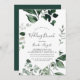 Este convite para o casamento é perfeito para um evento de casamento. A elegante, porém rústica, design apresenta folhas de cor verde-d-água escura e umeucalipto com uma moderna sensação de floresta boêmica.