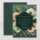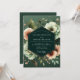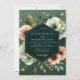 Evoke a sense of moody romance with this elegant and artistic floral design. A deep emerald green background provides a dramatic canvas for soft, painterly blooms in delicate shades of blush pink, peach, and cream. Lush anemones and delicate buds are nestled amongst verdant green leaves, creating a sophisticated composition for your nuptials.
