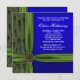 Elegante esmeralda, penas de pavão azul, faixa e convite para aniversário de joias. Você pode personalizar facilmente este convite verde esmeralda e azul para o seu evento simplesmente adicionando seus detalhes no estilo de texto e fonte que você prefere.