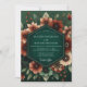 Embrace a dramatic and romantic atmosphere with this moody botanical design. A deep emerald green background sets the stage for a lush arrangement of painterly florals. Rich hues of rust and burnt orange pop against the dark backdrop, featuring elegant anemones and delicate foliage. This sophisticated, autumnal palette creates an unforgettable impression.