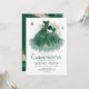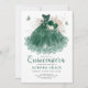 O convite perfeito para a quinceañera da sua filha está finalmente aqui! Este convite cômico e encantador da quinceañera apresenta um bonito vestido verde esmeralda, borboletas prateadas e elementos florais de boho tropical. Clique no botão "personalizar mais" se quiser reorganizar e formatar o estilo e a posição do texto.