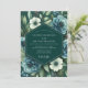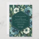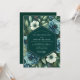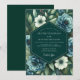 This elegant design evokes a moody and romantic atmosphere, perfect for a sophisticated evening affair. A dramatic palette of deep emerald green and slate blue is softened by creamy white blossoms and lush foliage. The painterly arrangement features artistic renderings of blue roses and delicate white anemones, creating a beautiful contrast against the dark background.