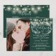 Um convite de casamento verde esmeralda com luzes bonito de cordas e uma delicada garland floral rústica desenhada à mão de folhagem botânica com tipografia de na moda. Personalize com todas as suas informações especiais sobre o dia do casamento, incluindo seu RSVP, acomodações e detalhes adicionais. Projetado por Thisnotme©