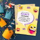 Celebre o dia especial do seu filho com este brilhante e divertido convite de 10 anos emoji-temático! Apresentando um fundo amarelo alegre, faces emoji lúcidas e sotaques roxos ousados, este convite é perfeito para uma vibração moderna e viva de uma festa. A design inclui emojis populares como o rosto risonho, emoji de olhos estrelados, e um chapéu de festa emoji, fazer-o ideal para crianças que adoram expressar-se através de emojis. Personalize os detalhes para criar um convite de aniversário personalizado e excitante. Perfeito para um tema de festa emoji cheio de diversão, este convite dá o tom para uma celebração memorável. Excelente para crianças, adolescentes e entusiastas emoji! Obrigado por ter vindo. Se tiver dúvidas sobre a personalização, envie-me uma mensagem aqui ou entre em contato comigo em arteartz0588@gmail.com.