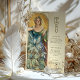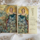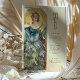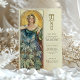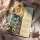 Esta carta de cardápio de casamento inspirada em Art Nouveau exude elegância com uma vibrante paleta de verdes, teal e matizes quentes de ouro. A design apresenta uma mulher graciosa cercada por florescentes folhagem e flores, sua expressão serena iluminada por um halo radiante que lembra a luz solar. Este trabalho de arte surpreendente e inspirado na natureza captura a essência do vintage Art Nouveau, com detalhes botânicos intrincados e linhas fluentes que acrescentam um toque etéreo a qualquer decoração de casamento. O cardápio no verso é apresentado num tipo elegante, que proporciona uma estrutura sofisticada para as suas ofertas culinárias especiais. Ideal para casamentos com uma vintage, jardim ou tema natural, este cardápio é uma bela mistura de arte e elegância.