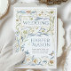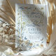 Convide seus convidados para comemorar seu dia especial com este convite de casamento encantador, profundamente inspirado pelas formas orgânicas que fluem do movimento Art Nouveau. A design apresenta uma intrincada fronteira de botânicos estilizados e delicada vida selvagem. Folhas graciosas e curvas em tons de azul empoeirado, verde-sábio e ouro mudado entrelaçadas com flores charmosas e estilizadas de quatro petalas em ouro antigo, ocre, e algumas com sutis centros azuis, evocando borboletas e flores de trevo. Móveis florais maiores e mais complexos em ouro e ouro acastanhado adicionam profundidade ao design. Adicionando um toque de chorona, uma delicada borboleta cor de pêssego e uma borboleta azul-clara se inverteu entre a folhagem, enquanto um pequeno pássaro azul-sereno é empoleirado dentro das cipós. O título de "Casamento" está lindamente integrado na parte superior do design, e o trabalho de arte tem uma textura sutil, reminiscente dos impressões antigos. Este convite é perfeito para casais que procuram uma estética única, artística e eterno com uma forte ligação à beleza da natureza. O verso oferece um espaço dedicado para "Os Detalhes Mais Finos", enquadrado pela mesma elegante fronteira de Art Nouveau.