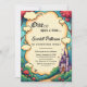 This elegant fairytale-style birthday invitation is perfect for a modern birthday. The retro design features a vintage enchanted forest, a castle illustration, and black calligraphy on a storybook-themed background.