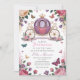 Celebrate the royal arrival with this enchanting baby shower invitation! A glittering pink carriage takes center stage, surrounded by dreamy florals, fluttering butterflies, and soft pastel details. Perfect for a mom-to-be expecting her little princess, this whimsical and elegant design adds fairytale magic to any celebration.
