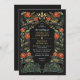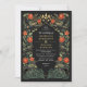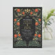 Elegant, whimsical, and gothic wedding design perfect for either an enchanted forest-themed celebration or a moody and dark gothic affair. This design features ravens set in a frame of green thorns, berries, red roses, and gold accents against a black background. Matching Items in our shop for a complete party theme. Please note that the gold on the invitation is NOT real foil and is printed in flat colors
