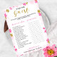 Um delicado chá de panela floral moderno "Find the Guest" (Encontre o Convidado), o design apresenta um padrão floral cor-de-rosa e dourado, este cartão é personalizado com o nome da noiva e a data do chá.
