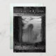 Cartão de convite para a festa de Halloween. Cartão é uma foto em preto-e-branco de um zumbi grampeado em uma janela suja coberta de teias de malha, com texto editável no verso.