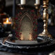 Entra numa noite assombrosamente elegante com este design de arco da catedral gótica, lanternas brilhantes e flores de cremson. Uma mistura perfeita de luz de velas e romance vintage define o clima para uma celebração inesquecível do Dia das Bruxas. Ideal para aqueles que amam temas negros, misteriosos e dramáticos do partido.