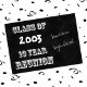 Faz 10 anos desde o ensino médio e é hora de um reencontro. Este convite de reencontro em estilo retrô pode ser exatamente o que você procura. Com um fundo de quadro-negro para as palavras "TURMA DE (ANO) 10 ANOS DE REENCONTRO" e um espaço para personalizar o design com o nome da sua escola, o design evoca um clima retrô. O verso do convite pode ser personalizado com os detalhes específicos do seu convite de reencontro de 10 anos. Copyright henishouseofpaper