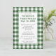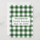 Convide parentes para uma reunião de família com convites apresentando um clássico xadrez de búfalo verde escuro e branco com seu texto personalizado em um retângulo branco no centro. Personalize com seu nome e detalhes da festa na barra lateral. Você também pode escolher entre vários tipos de papel. Perfeito para uma festa de Natal anual, churrasco, piquenique ou outra tradição.