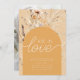 Bem-vindos amigos e familiares a um encantador Sip and See temático de outono com nosso elegante convite "Apaixonar-se"! A frente deste convite encantador apresenta belas flores creme e brancas complementadas por um arco amarelo suave, capturando a essência da beleza do outono. O título sincero "Apaixonar-se" define o tom para um encontro caloroso e convidativo, com todos os detalhes essenciais da festa elegantemente exibidos abaixo. O verso do convite apresenta amplo espaço para uma imagem em tamanho real, perfeito para exibir uma foto querida do seu recém-chegado. Celebre essa ocasião especial com estilo com um convite que combina perfeitamente o charme sazonal com toques pessoais.
