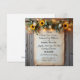 Celebre o seu amor com o charme acolhedor da coleção Rustic Golden Hour Gatherings. Este convite de casamento apresenta um cenário de madeira de celeiro aconchegante, um rolo de pergaminho sonhador e um arranjo deslumbrante de girassóis, rosas, eucalipto e luzes cintilantes - capturando aquele brilho da hora dourada logo antes do pôr do sol. Os toques florais suaves e os detalhes inspirados no vintage tornam este design perfeito para casamentos rústicos, campestres, de fazenda ou ao ar livre.
