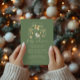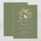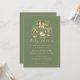 Convite de chuveiro de bebê de inverno com design de ornamento de aquarela verde e bege.