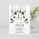Os ornamentos das árvores de Natal em preto e dourado, o Holly e as bagas destacam estes convites para festas de Natal com seus detalhes em caracteres quicos. Perfeito para as suas festas de férias pessoais ou profissionais. Encomendar convites de festas INSTANTÂNEOS DE DOWNLOAD e/ou IMPRESSOS.
