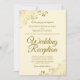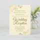 Este convite simples foi projetado para convidados que foram convidados para a recepção, mas não para a cerimônia de casamento em si. Apresenta um design elegante e sofisticado com letras em script dourado em um fundo marfim, creme ou branco e floreios dourados ornamentados em falso foil nos cantos. Uma maneira linda de convidar seus amigos e familiares para celebrar com você!