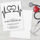 Batimento cardíaco preto EKG batimento do coração impressão, perfeito para a graduação de um médico ou enfermeiro na faculdade de medicina! Este design apresenta linhas de batimento cardíaco preto em negrito e texto em um fundo branco limpo em ambos os lados para uma aparência simples e moderna. Você pode personalizar as cores da fonte, o texto e o plano de fundo para corresponder às cores da escola ou a uma cor favorita. Convite Simples Para Graduação Da Faculdade De Medicina De Bater No Coração. Disponível como um convite impresso ou um convite digital para download para enviar por e-mail ou impressão localmente!