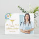 Cartão de Convite para Festas de formatura de Enfermeira Dourada Floral Azul-Cria