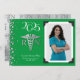 Celebre o novo formando da escola de enfermagem com este anúncio de graduação do Amorcego de prata em verde! Elegante com uma fronteira de fotos vintage e sotaques de confete prateado! Perfeito para quem se formar como enfermeira com seu solteiro de ciência em enfermagem!