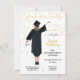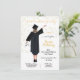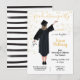 Convites de graduação moderna para o novo formando Médico na sua família. Possui a parte de trás de uma garota feliz com vestido de graduação em preto, boné e diploma, e segurando um estetoscópio com confete falsa de ouro e um moderno preto e branco riscado para trás. Mude o cabelo para o ajustado das suas necessidades, por favor peça-me a sua cor de cabelo em tkatz@me.com. Excelente para segundo grau, enfermeiro, doutor, faculdade, faculdade de direito, formando etc.