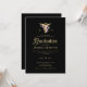 Uma ilustração falsa-dourada do símbolo caduceum para a profissão de enfermagem com rosas roxas e verde, assim como alguns borrifos de brilho (todos estes são efeitos digitais!) enfeitiça este elegante e clássico convite de festa de formatura escolar para enfermeiras, simples mas sofisticado, eterno e elegante. A design de tipografia contemporânea é elevada pelas matizes douradas e pela disposição minimalista. Personalize cada linha de texto. Preto, branco, roxo e ouro.