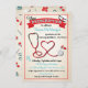 Mostre algum coração com esta enfermeira de estetoscópio em forma de coração ou Convite para graduação médica. Possui um chapéu retrô de enfermeira, pílulas, bandalheiros, tesouras, e agulha em um fundo antigo falso. Excelente de formatura ou de formação para a nova enfermeira ou médico da família. Ilustração desenhada à mão por McBooboos