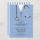 Design de enfermeira criativa com esfregões de hospital azul e um estetoscópio. Edite texto para criar um convite ou anúncio exclusivo para festas de formatura na escola de enfermagem.