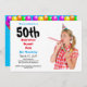 Um convite para fotos de 50 anos, engraçado e alegre, que você pode personalizar e enviar para a sua festa de 50 festas de aniversário. As palavras "50º Aniversário da Explosão" são usadas pela tipografia popular. Você pode substituir a foto da amostra por uma de suas. As cores do texto podem ser alteradas usando o menu de edição. Um padrão de aniversário aparece na parte de trás do cartão. Outras cores e padrões estão disponíveis.