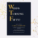 Celebre seu 50º aniversário com estilo e humor! Em um fundo azul marinho, o ouro e a tipografia branca no topo lê "Quem está girando cinquenta?" com a WTF maior e em ouro. Por baixo, você pode personalizar a tipografia branca e dourada com seus próprios detalhes. Único, atrevido e perfeito para as grandes comemorações de aniversário!
