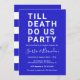Hospede um chá para a noiva e o noivo com este convite simples, ousado e divertido "ATÉ A MORTE DO PARTIDO DOS EUA". O modelo de texto permite personalizar todo o texto com os detalhes de evento desejados. Este convite está disponível numa variedade de cores - mostradas aqui em texto branco com um fundo azul de cobalto brilhante e um padrão de listras de rugby correspondente no verso. Muitos produtos de terceiros correspondentes estão disponíveis para coordenar o tema.