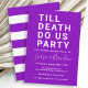 Hospede um chá para a noiva e o noivo com este convite simples, ousado e divertido "ATÉ A MORTE DO PARTIDO DOS EUA". O modelo de texto permite personalizar todo o texto com os detalhes de evento desejados. Este convite está disponível numa variedade de cores - mostradas aqui em texto branco com um fundo roxo vibrante e um padrão de stripes de râguebi correspondente no verso. Muitos produtos de terceiros correspondentes estão disponíveis para coordenar o tema.