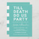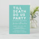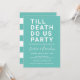 Hospede um chá para a noiva e o noivo com este convite simples, ousado e divertido "ATÉ A MORTE DO PARTIDO DOS EUA". O modelo de texto permite personalizar todo o texto com os detalhes de evento desejados. Este convite está disponível numa variedade de cores - mostradas aqui em texto branco com fundo aqua e padrão de stripes de râguebi correspondente no verso. Muitos produtos de terceiros correspondentes estão disponíveis para coordenar o tema.