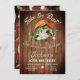 Divirta-se com este Engraçado Convites à Pesca de Bass. Solicite digital ou impresso no menu suspenso. Apresenta um peixe-base com o chapéu de desportista tentando "pegar a isca" em um fundo de madeira rústica com ícones de pesca como uma lata de vermes, lures, rede. Excelente para um menino ou menina que ama pescar ou o excelente ao ar livre! Todos os textos podem ser alterados
