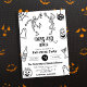 Engraçado Engraçado Quirky Whimsical Hand Desenhou o convite do Festa de Halloween - Boos e Booze - O preto e branco inspirou o convite do Festa de Halloween. Em preto clássico e branco com esqueletos dançantes segurando bebidas coquetéis, jack ou lanternas, teia de aranha, bola de discoteca, fantasmas assustadores, vidro martini e garrafa de vinho. Personalize este modelo de convite do Halloween Party editável com os seus próprios detalhes de eventos. Todo texto é editável.