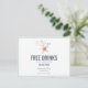 Cartões-postais engraçados de aviso de casamento em um design de estrela-do-mar aquarela e coral que diz "Bebidas grátis (e estamos nos casando)". Personalize com os detalhes do seu casamento na frente e no verso do cartão-postal. Estes são perfeitos para qualquer casal que planeja um casamento na praia.
