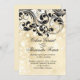 Este convite de casamento régio, elegante e sofisticado apresenta floreios em brilho preto sobre um fundo de boque de marfim metálico falso. Clique no botão PERSONALIZAR para adicionar texto. Disponível em 7 cores. Convites, RSVPs, guardanapos de coquetel e mais disponíveis. Para adicionar mais glamour, escolha o papel Luxe Pearl ou Champagne Shimmer. Para perguntas ou pedidos de outros itens com este design, entre em contato: cheryl@cheryldanielsart.com. "Glitter Curlicues on Faux Metallic" por Cheryl Daniels © 2015.