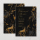 Um fundo de abstrato que lembra o mármore em tons de cinzas de carvão a preto, veinado com ouro reluzente, é o pano de fundo para textos elegantes e layouts modernos de design nos pedaços desta bela suíte de casamento. O convite mostrado aqui apresenta o texto acima mais o texto de script de fluxo opcional de 'Janto de ensaio' e uma modelo para adicionar os detalhes do evento pertinente. Procure ID644 para ver todas as peças de coordenação neste conjunto.