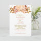 Branco é a cor de fundo deste design de Janto de Casamento elegante e floral laranja. Altere facilmente as informações para o seu próprio convite personalizado. Elegante design de casamento formal.