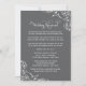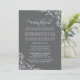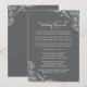 Defina um tom moderno e sofisticado para a noite do ensaio com este convite de jantar de ensaio de casamento com carvão. Os floreios de pergaminho branco e a caligrafia refinada se destacam contra o fundo cinza escuro, enquadrando um poema rimado encantador que guia os convidados através da prática da cerimônia e celebração do jantar. Todo o texto, cores e detalhes de layout são totalmente editáveis para combinar com o estilo do seu casamento.